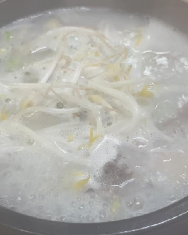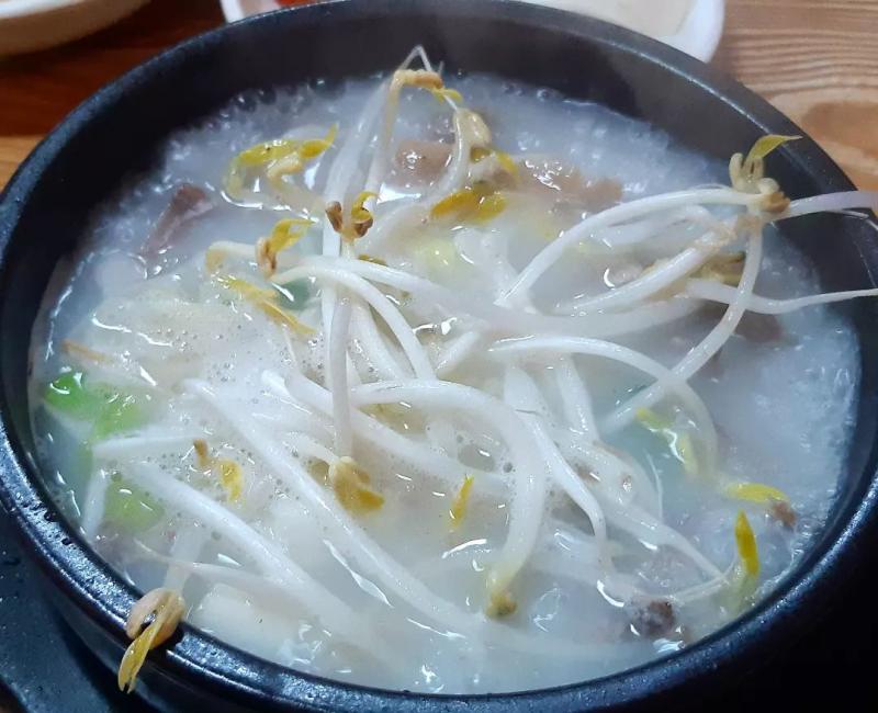 순댓국에 숙주를 넣어 국물이 개운하다.