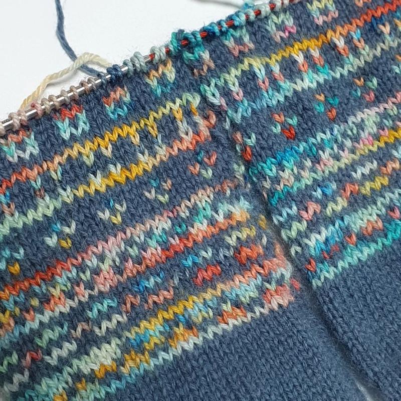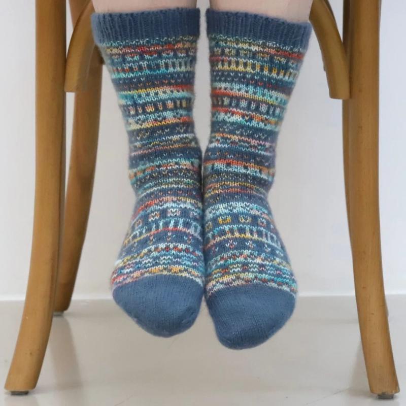 알록달록 손염색실과 차분한 저녁하늘빛 실로 만든 예쁜 페어아일양말