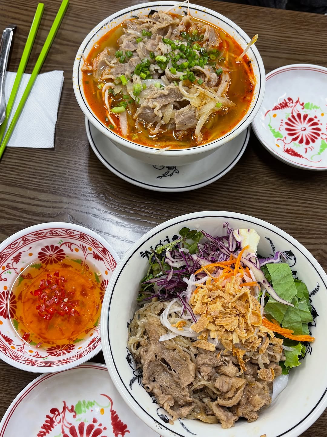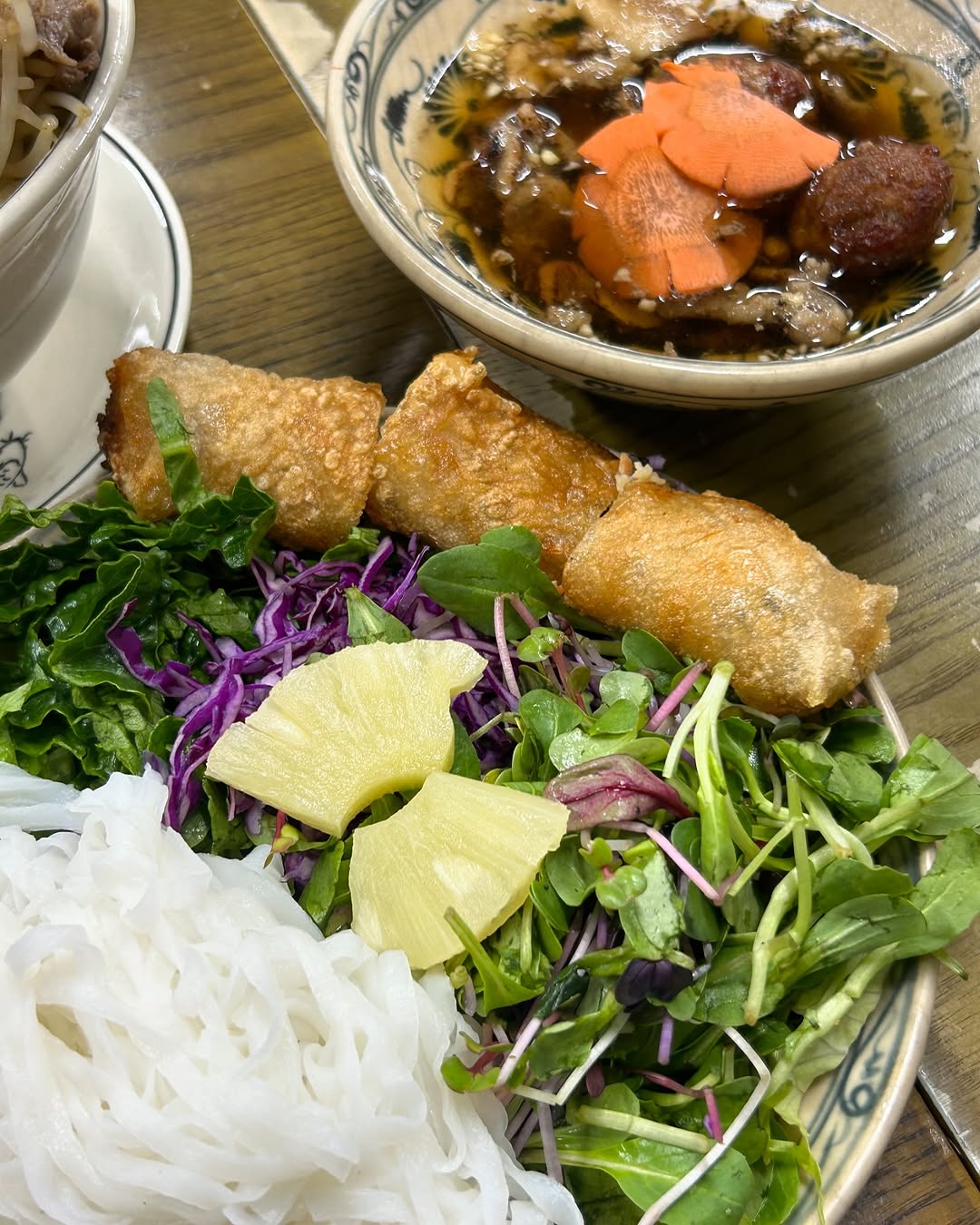그리고 이곳의 짜조(넵) 는 정말 차원이 달라요! 보통 다른 곳에서는 사이드 메뉴로 맛보는 정도인데, 노이덴의 짜조는 마치 메인 메뉴 같은 존재감을 뿜뿜! 💪🏻 팔뚝만 한 크기에 겉은 바삭, 속은 각종 재료로 꽉 차 있어서 한입 베어 물면 육즙이 팡팡 터진답니다. 🤤 함께 나오는 소스에 찍어 먹으면 정말 말해 뭐해요~ 이 맛, 저만 알기엔 너무 아쉽더라구요!