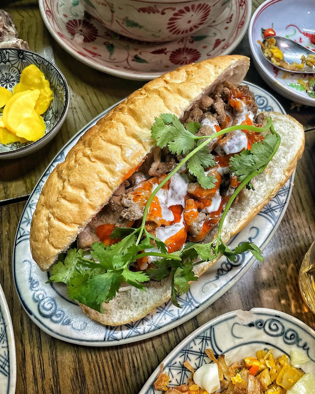 베트남 현지의 맛을 그대로 살린 반미도 빼놓을 수 없죠! 🥖 겉은 바삭하면서 속은 부드러운 바게트 안에 신선한 채소와 든든한 고기가 가득 채워져 있었어요. 여기에 고수와 소스가 더해지니 맛은 더욱 풍성해지고! 👍🏻