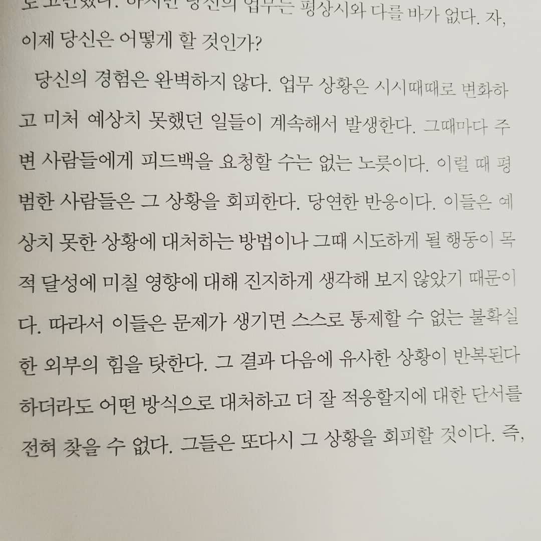 이런 고민들을 안고 읽게 된 책이 바로 <탁월한 리더는 피드백이 다르다>였답니다. 이 책은 제게 정말 많은 인사이트를 주었어요. 특히 인상 깊었던 건, 건설적인 피드백 자체를 설명하는 것보다 **피드백 과정에서 상대방의 마음이 다치지 않도록 조심해야 한다**는 부분이었어요. 직원을 대상으로 하는 이야기였지만, 사실 우리가 만나고 소통하는 모든 상대에게 해당되는 말이겠죠! 아무리 좋은 말이라도 상대방을 배려하지 않으면 의미가 없다는 걸 다시금 깨닫게 되었어요. 내가 건넸던 말들이 혹시 상대방의 마음을 불편하게 하지는 않았을까, 다시금 생각해보는 시간을 가졌습니다.